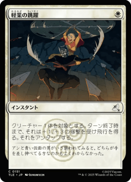 クリーチャー1体を対象とする。ターン終了時まで、それは+1/+3の修整を受け飛行を得る。それをアンタップする。