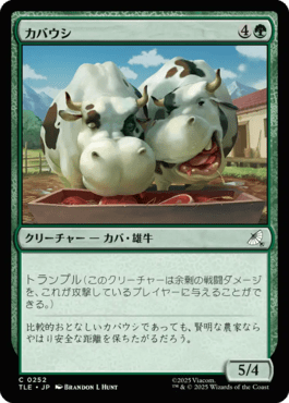 トランプル(このクリーチャーは余剰の戦闘ダメージを、これが攻撃しているプレイヤーに与えることができる。)