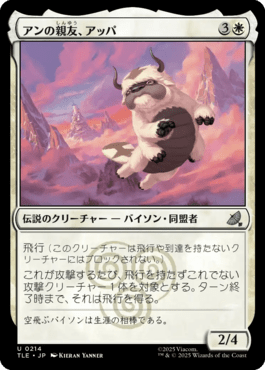 Flying (This creature can't be blocked except by creatures with flying or reach.)Whenever Appa attacks, another target attacking creature without flying gains flying until end of turn.