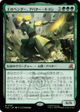 During your turn, Avatar Kyoshi has hexproof.At the beginning of combat on your turn, earthbend 8, then untap that land. (Target land you control becomes a 0/0 creature with haste that's still a land. Put eight +1/+1 counters on it. When it dies or is exiled, return it to the battlefield tapped.)