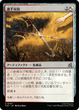あなたのターンの間、装備しているクリーチャーは+1/+1の修整を受け先制攻撃を持つ。