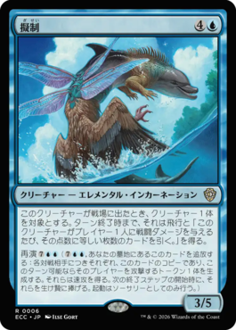 このクリーチャーが戦場に出たとき、クリーチャー1体を対象とする。ターン終了時まで、それは飛行と「このクリーチャーがプレイヤー1人に戦闘ダメージを与えるたび、その点数に等しい枚数のカードを引く。」を得る。
