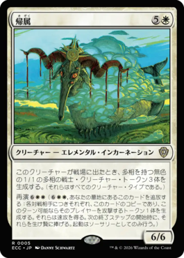 このクリーチャーが戦場に出たとき、多相を持つ無色の1/1の多相の戦士・クリーチャー・トークン3体を生成する。(それらはすべてのクリーチャー・タイプである。)