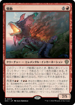 再演{7RR}({7RR}, あなたの墓地にあるこのカードを追放する:各対戦相手につきそれぞれ、このカードのコピーであり、このターン可能ならそのプレイヤーを攻撃するトークン1体を生成する。それらは速攻を得る。次の終了ステップの開始時に、それらを生け贄に捧げる。起動はソーサリーとしてのみ行う。)