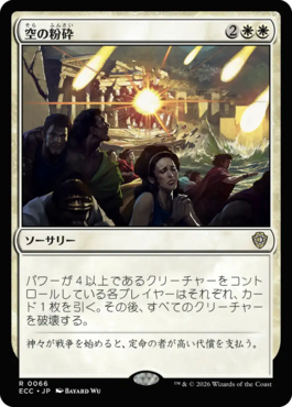 パワーが4以上であるクリーチャーをコントロールしている各プレイヤーはそれぞれ、カード1枚を引く。その後、すべてのクリーチャーを破壊する。