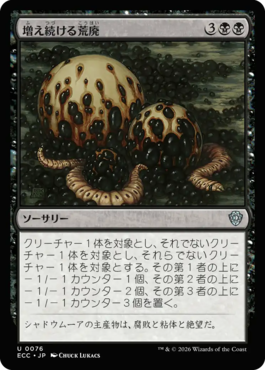 クリーチャー1体を対象とし、それでないクリーチャー1体を対象とし、それらでないクリーチャー1体を対象とする。その第1者の上に-1/-1カウンター1個、その第2者の上に-1/-1カウンター2個、その第3者の上に-1/-1カウンター3個を置く。