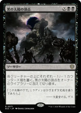 各クリーチャーの上にそれぞれ-1/-1カウンターX個を置く。黒の太陽の頂点をオーナーのライブラリーに加えて切り直す。