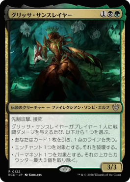 グリッサ・サンスレイヤーがプレイヤー1人に戦闘ダメージを与えるたび、以下から1つを選ぶ。