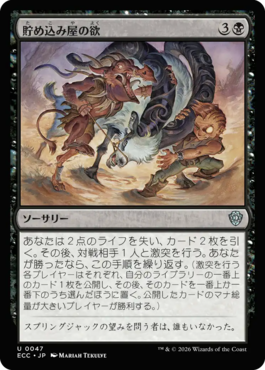 あなたは2点のライフを失い、カード2枚を引く。その後、対戦相手1人と激突を行う。あなたが勝ったなら、この手順を繰り返す。(激突を行う各プレイヤーはそれぞれ、自分のライブラリーの一番上のカード1枚を公開し、その後、そのカードを一番上か一番下のうち選んだほうに置く。公開したカードのマナ総量が大きいプレイヤーが勝利する。)