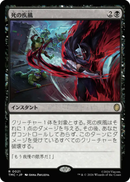 クリーチャー1体を対象とする。死の疾風はそれに1点のダメージを与える。その後、あなたがコントロールしておらず、このターンにダメージを受けているすべてのクリーチャーを破壊する。