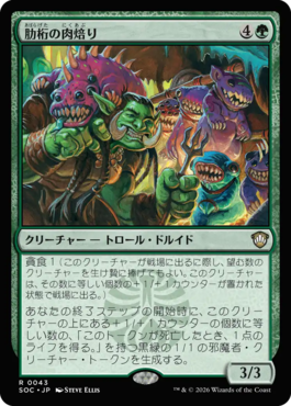 貪食1(このクリーチャーが戦場に出るに際し、望む数のクリーチャーを生け贄に捧げてもよい。このクリーチャーは、その数に等しい個数の+1/+1カウンターが置かれた状態で戦場に出る。)