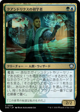 魔技 ― あなたがインスタントやソーサリーである呪文1つを唱えるかコピーするたび、あなたのライブラリーの一番上にあるカード3枚を見る。「その中から土地・カード1枚を公開し、あなたの手札に加える。」を選んでもよい。残りをあなたのライブラリーの一番下に望む順番で置く。