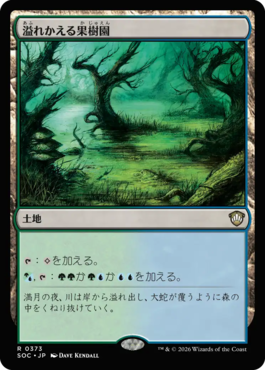 HOME > PRODUCTS > カードギャラリー > ストリクスヘイヴンの秘密 統率者 CARD GALLERY 『ストリクスヘイヴンの秘密 統率者』のカード 《溢れかえる果樹園》 (マナ・コストは存在しません) Land {T}:{C}を加える。 {(g/u)}, {T}:{GG}か{GU}か{UU}を加える。 満月の夜、川は岸から溢れ出し、大蛇が覆うように森の中をくねり抜けていく。 : Add ., : Add , , or . カードテキストは印刷カードのテキストをもとにしています。 『ストリクスヘイヴンの秘密 統率者』のカード一覧