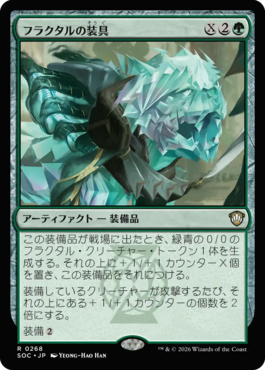 この装備品が戦場に出たとき、緑青の0/0のフラクタル・クリーチャー・トークン1体を生成する。それの上に+1/+1カウンターX個を置き、この装備品をそれにつける。