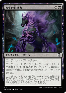 エンチャントしているクリーチャーが攻撃するたび、それのコントローラーは2点のライフを失い、あなたは2点のライフを得る。