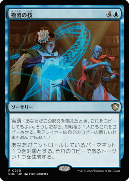 実演(あなたがこの呪文を唱えたとき、これをコピーしてもよい。そうしたなら、対戦相手1人にもこれをコピーさせる。両プレイヤーは自分のコピーの新しい対象を選んでもよい。)