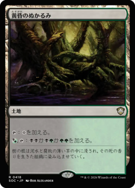 HOME > PRODUCTS > カードギャラリー > ストリクスヘイヴンの秘密 統率者 CARD GALLERY 『ストリクスヘイヴンの秘密 統率者』のカード 《黄昏のぬかるみ》 (マナ・コストは存在しません) Land {T}:{C}を加える。 {(b/g)}, {T}:{BB}か{BG}か{GG}を加える。 樹の根は泥水と腐敗の薄い茶の中に浸され、その死の香りを生きた組織に染み込ませていく。 : Add ., : Add , , or . カードテキストは印刷カードのテキストをもとにしています。 『ストリクスヘイヴンの秘密 統率者』のカード一覧