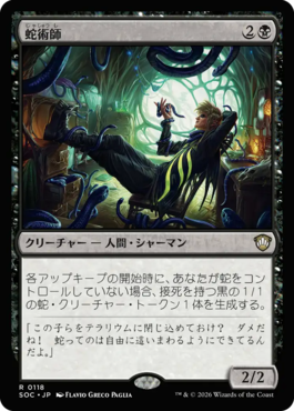 各アップキープの開始時に、あなたが蛇をコントロールしていない場合、接死を持つ黒の1/1の蛇・クリーチャー・トークン1体を生成する。