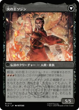 火の王ソジンがプレイヤー1人に戦闘ダメージを与えるたび、あなたは{X}を支払ってもよい。そうしたとき、そのプレイヤーの墓地にある望む枚数のクリーチャー・カードをマナ総量の合計がX以下になるように選んで対象とする。それらをあなたのコントロール下で戦場に出す。