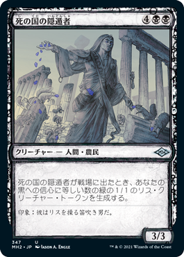 《深き森の隠遁者》はリス・トークンを4体生成する能力と、自分がコントロールしているリスに+1/+1修整を付与する能力を持つ、《リスの将軍、サワギバ》と相性抜群のクリーチャーです。