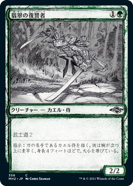 戦闘ダメージを与えるたびにスピリット・トークンを生成できるので、《閃足の幻霊》、《旅立った甲板員》、《アゾリウスの伝令》などのブロックされないスピリットたちは相性が良さそうです。