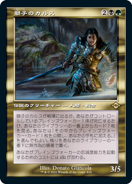 12/12トランプルという脅威的なサイズを攻撃に活かさないのは流石にもったいないので、《狩猟の統率者、スーラク》、《速足のブーツ》、《稲妻のすね当て》、《山賊の頭の間》などで速攻を付与して積極的に殴りかかりましょう!