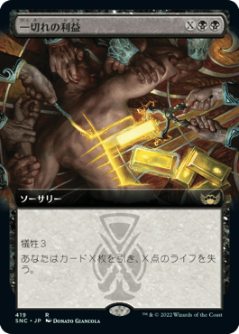 ドローした枚数と同じ数だけライフを失うカードをプレイすると(《一切れの利益》、《力の確約》、《リリアナの契約》など)、失ったライフ以上に回復して結果的にライフが増える!
