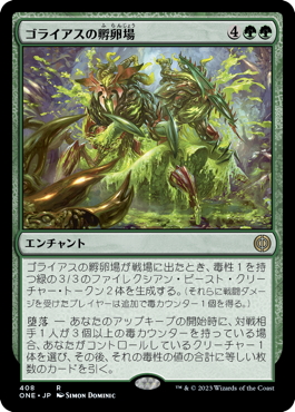 あなたがクリーチャーでない呪文を唱えるたび、赤の1/1のファイレクシアン・ゴブリン・クリーチャー・トークンX体を生成する。Xはその呪文のマナ総量に等しい。ターン終了時まで、それらは速攻を得る。