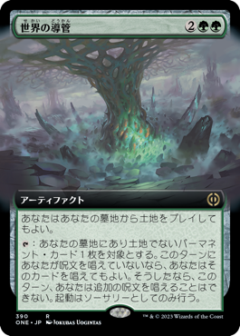 {4}{G}{G}, {T}:あなたのライブラリーの一番上にあるカード6枚を見る。「その中から、マナ総量があなたがコントロールしている土地の数以下であるクリーチャー・カード1枚を公開し、戦場に出す。」を選んでもよい。残りをあなたのライブラリーの一番上に無作為の順番で置く。