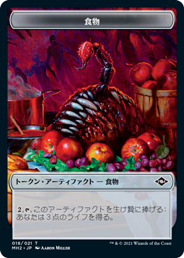 食物・トークンはそのまま食べてもいいですし、2つあれば《アスモラノマルディカダイスティナカルダカール》の除去能力として使うことも可能です!