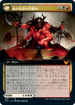 これらの小さな生け贄になったクリーチャーを《オリークの首領、エクスタス》で回収することでもアドバンテージが稼げる。あるいは第2面の《血の化身の目覚め》でまとめて生け贄に捧げるのも手だ。