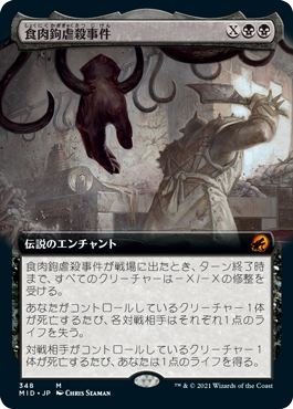 《ドゥームスカール》《雪上の血痕》《食肉鉤虐殺事件》、環境の三強とも言える全体除去を計7枚も備えた「エスパー(白青黒)タップアウト」だ。