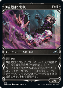 パーマネントへの対処も忍者にお任せ。《毒血勢団の口封じ》でクリーチャーを、そして新たな緑の忍者《機械壊しの河童》でアーティファクトを破壊しよう。