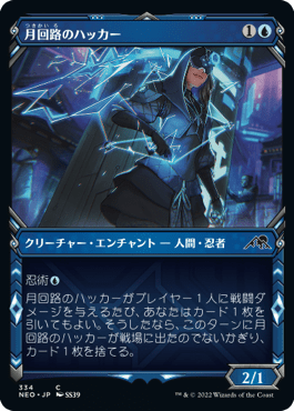 ただし、忍術で戦場に出たターンのみはこの捨てるという工程を省いてシンプルなドローとして運用できる。そして忍術に必要なコストはたったの{U}! この圧倒的なコストの軽さ、そして忍術を抜きにしても2マナという軽さで普通に唱えるのも問題ない点を評価されて、月回路が優先されているんだな。