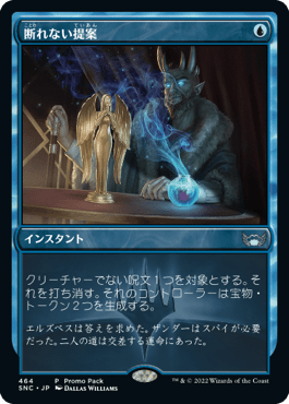 《刻印》《断れない提案》など、使い道が分かりにくかったりデメリットが大きかったりするカードでも、アイディア一つでクールなデッキを生み出すキーになる。マジックはこれだから面白い。