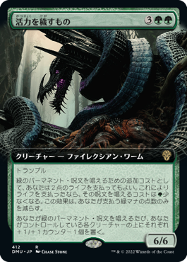 このカードのこと、初見では脳が正しく理解していなかったんだが……唱えるのに支払った{G}{G}につき+1/+1カウンターが3個置かれて戦場に出る。3個、3個だぞ3個。2個と思っていたら3個じゃないか。ということはミニマムでコストを支払ったとして{G}{G}{G}{G}の4マナで……8/8? マジで? ちょっとデカすぎだろうよ!