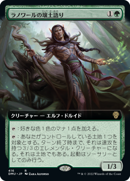 《群れ率いの人狼》《老樹林のトロール》《不詳の安息地》といった以前の緑単の主役たちは、2色以上のデッキで運用は難しく、単色でデッキを組んだからこそのご褒美的な存在だった。『団結のドミナリア』ではこれらのようなシンボルが色濃かったり単色を推奨するようなカードがなかったため、緑単のデッキを見る機会は少なかった。白との2色デッキなど、多色の中で緑はそのパワーを示していたからね。決してカードが力不足だったというわけではないのだ。