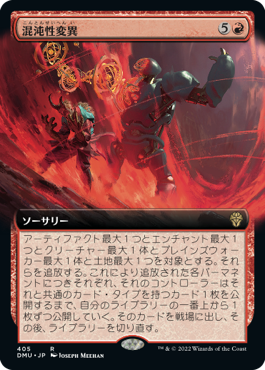 過去のスタンダードやパイオニアなどでも同様の手法で強大なパーマネントを叩きつけるデッキが繁栄したものだが、《混沌性変異》は複数のタイプを同時に戦場に迎えるため、歴代のものと比べても遜色のないパワフルなデッキを組むことができる。実際問題、門でクリーチャーを薙ぎ倒されてタイタンで回復やらなんやらされて勝てるかっていったら……うーん、「はい」とは返事できないな(笑)。