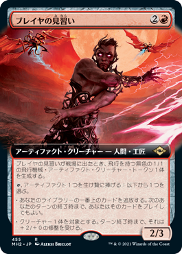 そしてこのバトルキャノン、戦場に出た時だけでなく死亡時にも誘発する点に注目。溶接工でグルグル入れ替えて、対戦相手のパーマネントをバキバキに崩壊させていく姿……たまらないね。この墓地利用システムは《ファイレクシアのドラゴン・エンジン》《ブレイヤの見習い》とも好相性。アーティファクトをクルクルと出し入れして気持ちよくなろう。