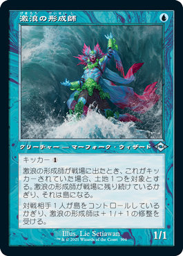実物を見て強さを実感したと言えば《激浪の形成師》もそんな1枚だったな。どんな土地でも《島》に変えてしまう、かなりのワル。これで3色デッキや無色デッキのマナ基盤を攻め、デッキを機能不全に陥れようとする。