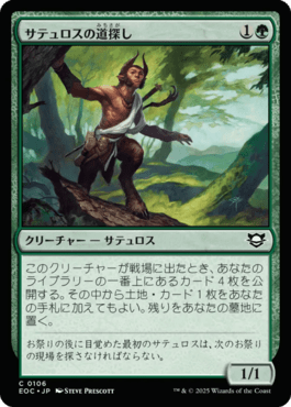 | 4《植物の聖域》 4《尖塔断の運河》 1《銅線の地溝》 2《ヤヴィマヤの沿岸》 2《カープルーザンの森》 1《繁殖池》 1《マナの合流点》 2《耐え抜くもの、母聖樹》 1《天上都市、大田原》 1《島》 1《山》 -土地(20)- 3《マーフォークの秘守り》 4《サテュロスの道探し》 3《帳簿裂き》 3《屑鉄造りの雑種犬》 4《嵐の伝令》 -クリーチャー(17)- |