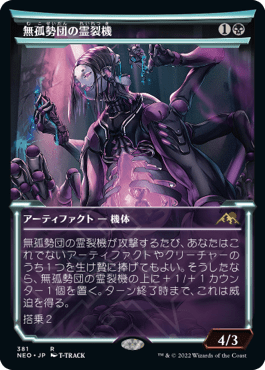 2 《喉首狙い》 2 《切り崩し》 2 《冥府の掌握》 4 《堕落した確信》 1 《人体改造機の冠》 4 《ウラブラスクの溶鉱炉》 1 《無孤勢団の霊裂機》 -呪文(16)- |