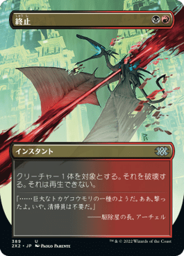 4 《思考囲い》 2 《致命的な一押し》 2 《終止》 2 《稲妻》 1 《溶鉄の崩壊》 4 《まだ死んでいない》 1 《アガディームの覚醒》 4 《鏡割りの寓話》 -呪文(20)- |