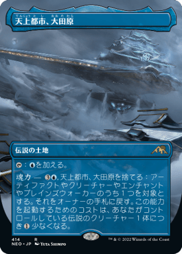 とりあえず初見でわかることは、土地の多さ。総枚数29、デッキの半分が土地である。こんなに土地が多い理由は……魂力土地にある。マナを払い手札から捨てることで能力を起動し、土地でありながら呪文のように使える魂力能力を持った伝説の土地。そのサイクルの中でも《天上都市、大田原》《見捨てられたぬかるみ、竹沼》《耐え抜くもの、母聖樹》の3つをたっぷりと採用。これらに必要なマナは伝説のクリーチャー1体につき{1}軽減される。採用されているクリーチャーが全て伝説であるこのデッキでは、これらのコストが大きく軽減されることになる。結果、土地が主体のこのリストは打ち消されにくい呪文的なものを、低コストで運用できるものとなっているのである。