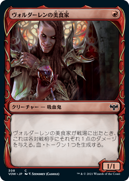 | 4 《硫黄泉》 4 《黒割れの崖》 3 《憑依された峰》 1 《不穏な火道》 1 《見捨てられたぬかるみ、竹沼》 1 《反逆のるつぼ、霜剣山》 2 《ミレックス》 1 《マイコシンスの庭》 3 《沼》 2 《山》 -土地(22)- 4 《ヴォルダーレンの美食家》 2 《すりのチビボネ》 4 《税血の収穫者》 3 《処刑者の族長、ヴラーン》 3 《甦りし悪夢、ブレイズ》 -クリーチャー(16)- |