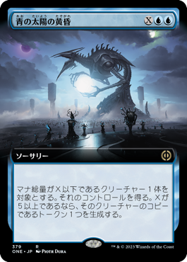 青単の強みは《知識の流れ》が使えること、これに尽きる!と言っても決して過言ではない。島の枚数分だけドロー、その後2枚捨てるので島が5枚以上ある状況で用いたい。これのコストを《傲慢なジン》で軽減してなるべく隙なく運用するのが青単の醍醐味であり、そして今後はこのコスト軽減をエルージュも行ってくれることを期待しても良いのではないかな。同じくコスト軽減することで強く運用できそうなのは《青の太陽の黄昏》、これで青単にとっては一つの鬼門となる戦場に出たクリーチャーに対抗していこう。