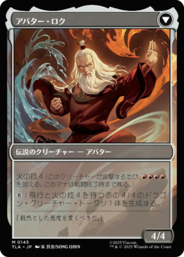 新カードからは《ロクの伝説》も採用されている。かつてのスタンダードで一時代を築いた《スカルドの決戦》を彷彿とさせる英雄譚だ。ライブラリーの上から追放したカードを唱えられるようにするⅠ能力で息切れをカバー。Ⅱ章の1マナ加える動きは地味に見えるかもしれないが、Ⅰ章で得た3枚のカードを使い切る助けになるためありがたいものだ。そして最後は《アバター・ロク》に変身。火の技4で大量にマナを供給し、{8}支払ってドラゴンを生成するド派手なクリーチャーに。火の技を《火のベンダーの位に至る》でコピーできれば全くの無からドラゴンが湧いてくることに。この手のデッキが苦手とする長期戦もある程度戦えるようにしてくれる、頼もしい英雄譚だ。