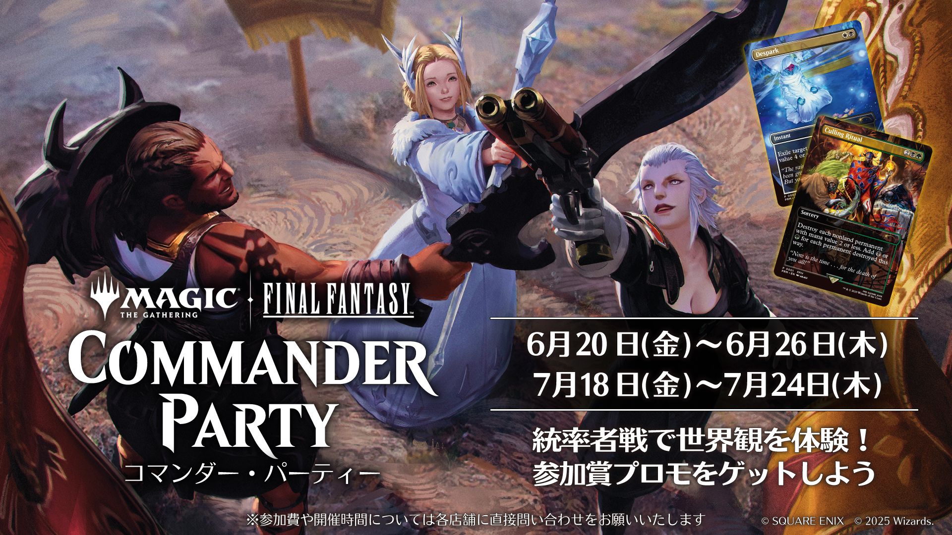 世界観を味わいつつ統率者戦を遊べる「コマンダー・パーティー」が、『マジック:ザ・ギャザリング——FINAL FANTASY』でも開催されます。参加賞として、セットにはない特別なアートを使用した英語版の《選別の儀式》や《灯の燼滅》を配布予定です。