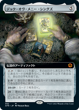 『フォーゴトン・レルム探訪』で、本流のセットにダイスを振ることを導入することにしたのだ。ダイスを振ることは銀枠能力の定番であり、『Unfinity』でもデザイン上素晴らしい効果として使う予定だった。(『フォーゴトン・レルム探訪』が先に出たが、『Unfinity』のかなりの部分はそれ以前にデザインされていた。)