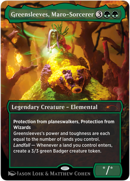 1つ目のバンドルには、「Squishful Thinking」ドロップに収録されている各カードのボーダーレス版カード・スタイルが含まれており、プレイ・ドーで彩られたカードをデジタルでも楽しむことができます。さらに、《マローの魔術師、グリーンスリーヴス》と《アカデミーの整備士》が『MTGアリーナ』に登場します! 食物、手掛かり、宝物、アナグマ・トークンを大量に生み出す準備を整えましょう。